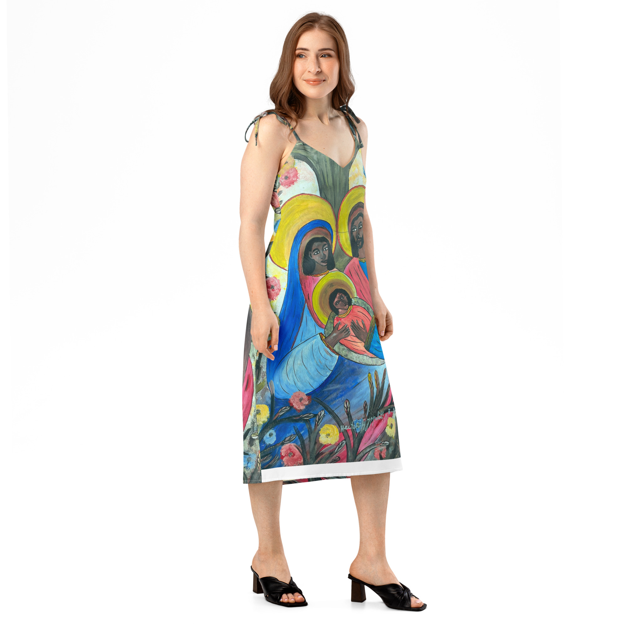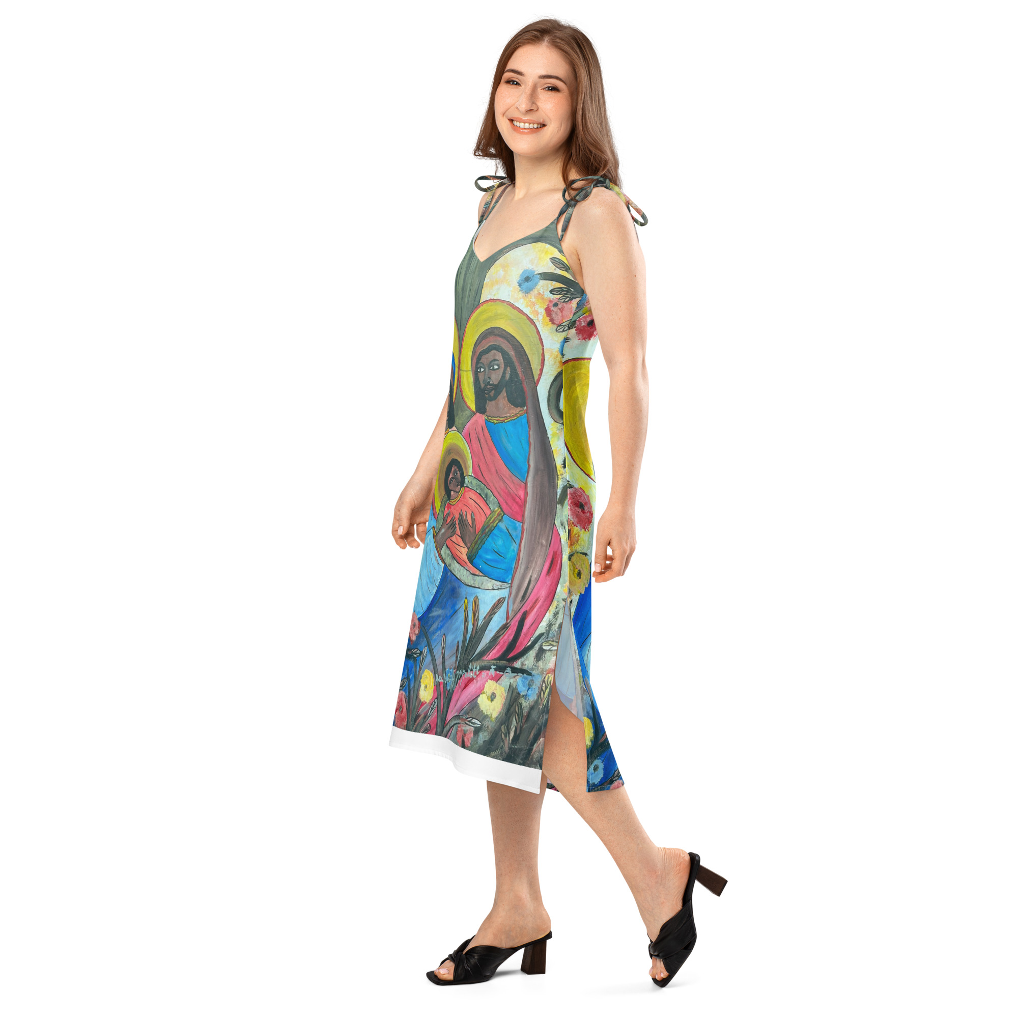Floaty, flirty, and totally flattering—from daytime garden parties to dinner dates. This midi dress features a breezy side slit, adjustable tie straps, and a built-in bra for no-fuss style.